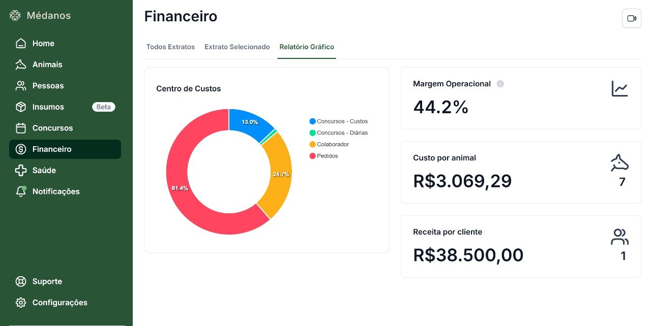 "Eu acompanho tudo pelo celular: custos, agenda, saúde e histórico de cada cavalo. A Médanos trouxe a transparência que eu sempre quis da equipe."